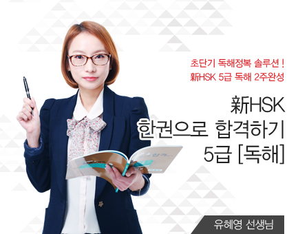 | 강좌범위 | 新HSK 5급 전범위 - 新HSK 5급 제 1부분 빈칸 채우기 - 新HSK 5급 제 2부분 단문 독해 - 新HSK 5급 제 2부분 장문 독해 |
