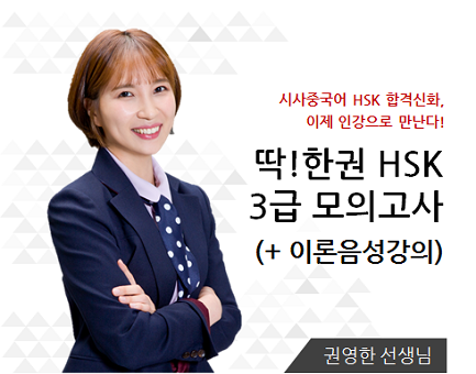 | 강좌특징 | * 영상강의는 <新HSK PT 3급 교재>의 부록으로 실린 모의고사 강의입니다. 시사중국어 新HSK 합격 신화 권영한선생님 인강 전격오픈!!