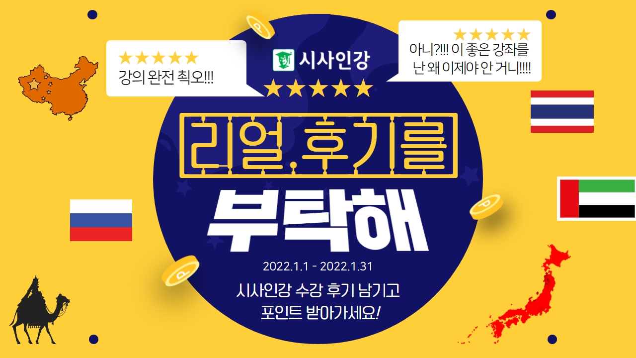 "나는 시시인강에서 O린이 탈출했다!!" 우수 후기를 작성해 주신 분들께는 마일리지가 와르르르르르~~~~😍😍😍 이벤트 기간 2022-01-06~2022-01-31