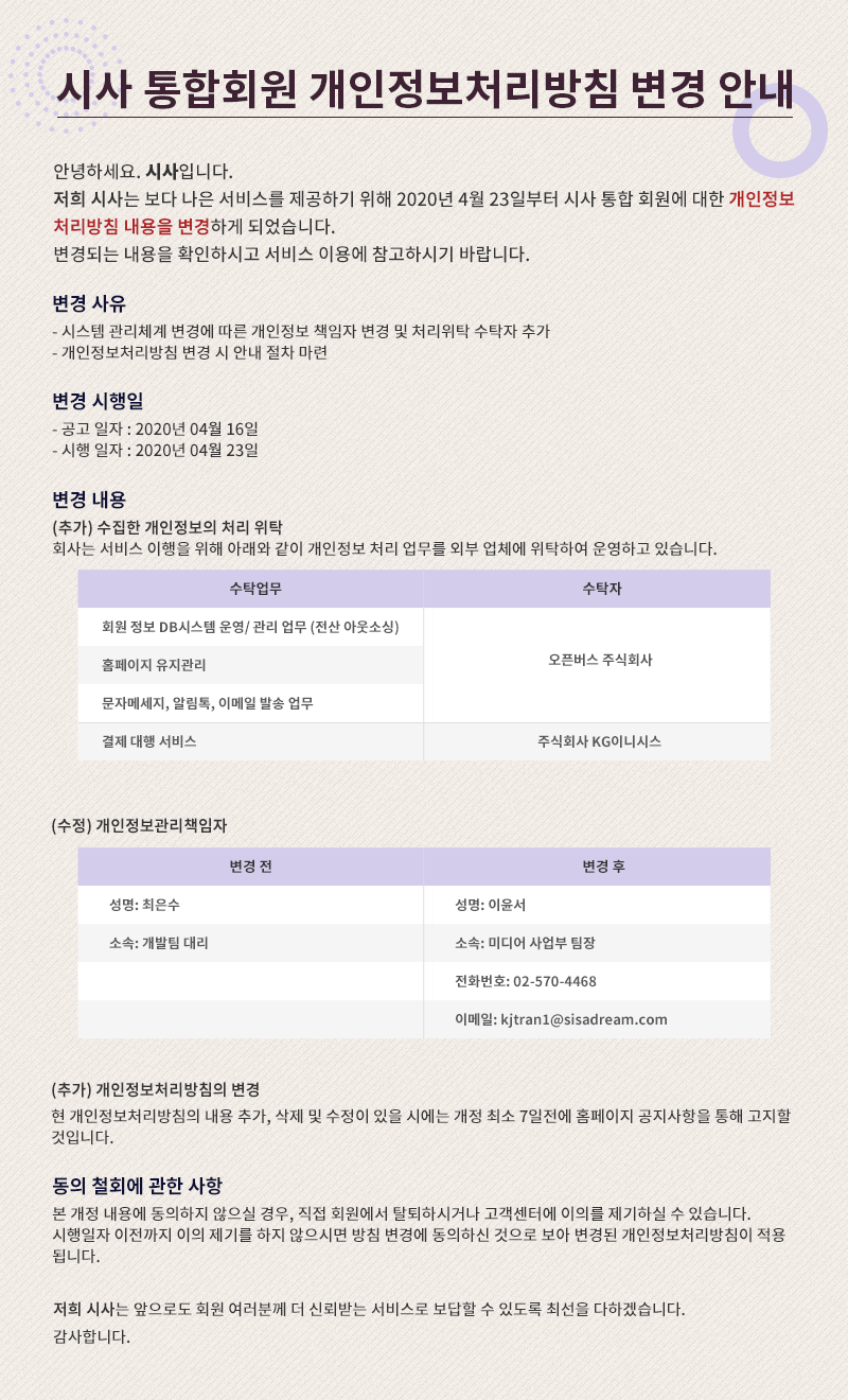 개인정보처리방침 변경 안내